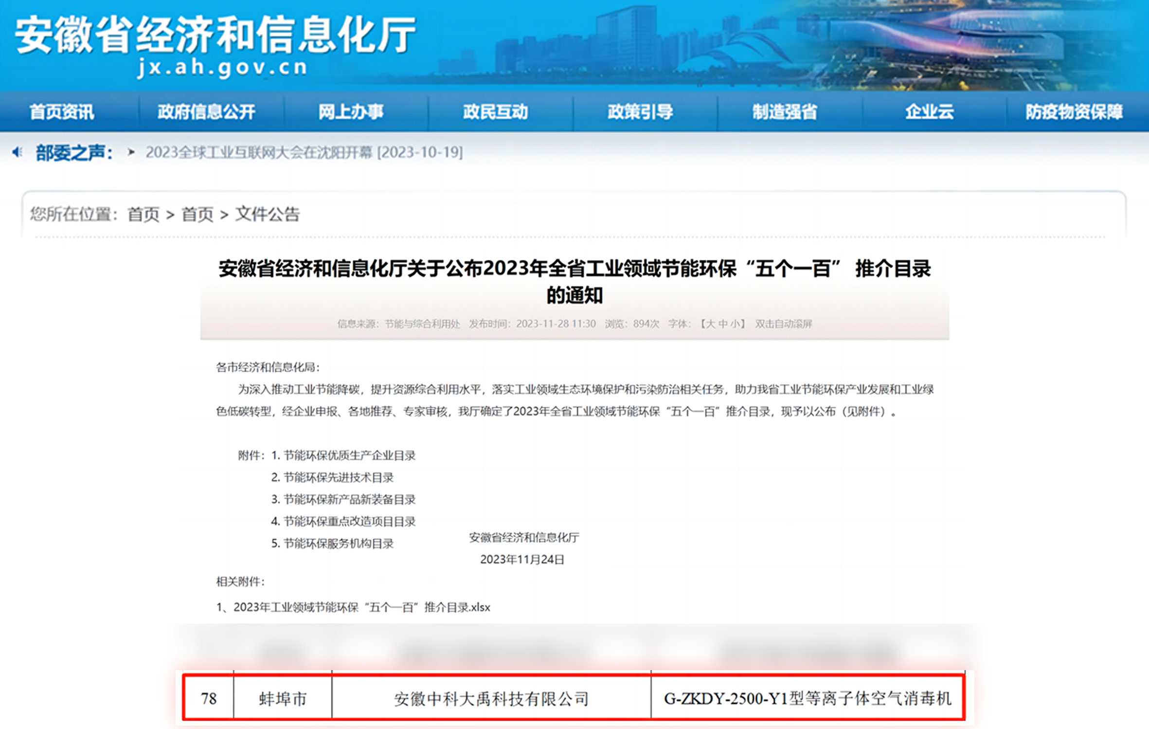• 力康盾?ZKDY-G-180-P型等離子體空氣消毒機入選2024年度第三批安徽省首臺套重大技術裝備,評定等級:國內先進